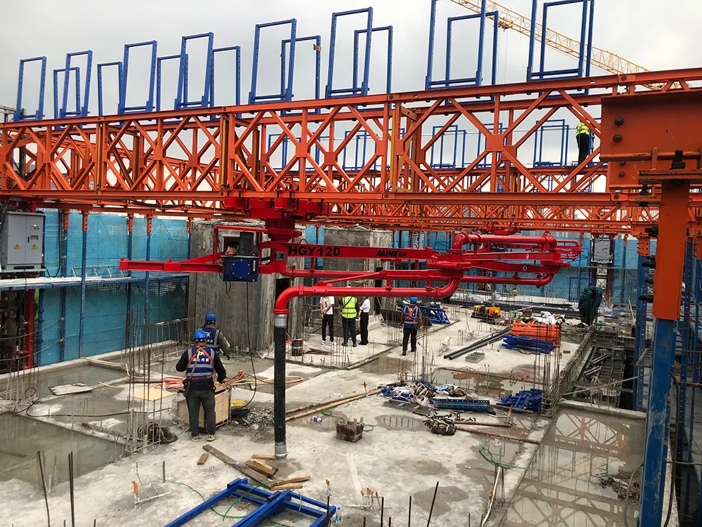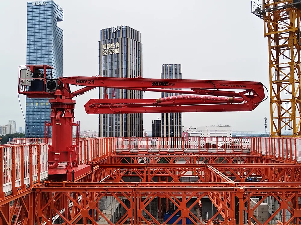 造樓機(jī)專用混凝土布料機(jī)讓造樓機(jī)在現(xiàn)場諸多受限條件的基礎(chǔ)上,無論是在安裝空間上,還是在澆筑范圍上,都有了更多的選擇;再配上智能操控方式,讓混凝土澆筑變得更加簡單、便捷。