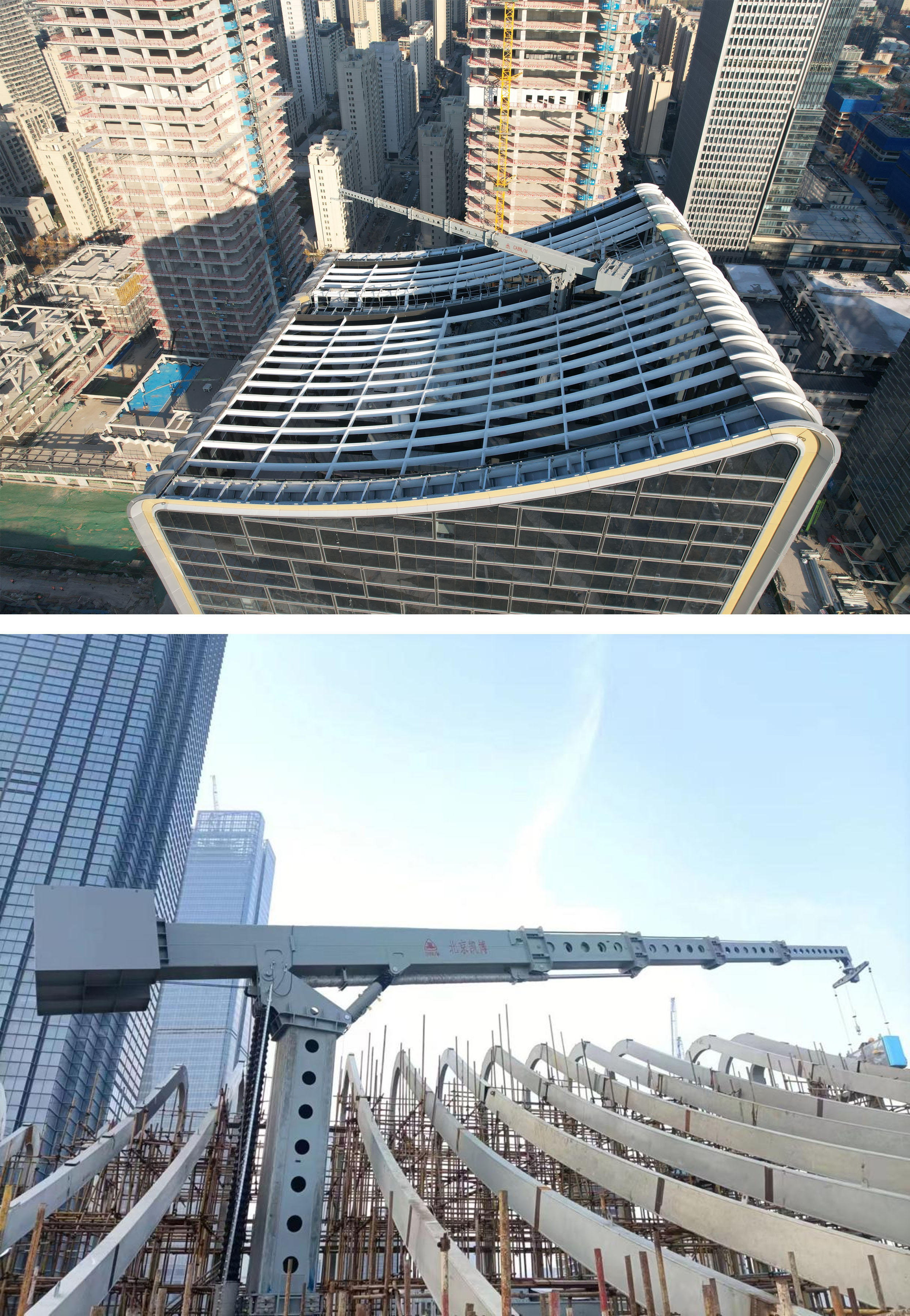 泰安金融商務(wù)區(qū)雙子塔建筑形態(tài)呈“雙手合十”狀,寓“禮拜泰山”之意,其獨(dú)特的玻璃幕墻設(shè)計(jì)對(duì)日常維護(hù)提出極高要求。凱博擦窗針對(duì)項(xiàng)目建筑特點(diǎn)進(jìn)行創(chuàng)新設(shè)計(jì):超長(zhǎng)臂展設(shè)計(jì)可覆蓋雙子塔復(fù)雜的立面結(jié)構(gòu)、液壓升降立柱結(jié)構(gòu)可實(shí)現(xiàn)完美停機(jī)隱藏、智能化控制系統(tǒng)可實(shí)現(xiàn)遠(yuǎn)程故障診斷與維護(hù)、多重安全防護(hù)裝置最大限度保障高空作業(yè)安全,既完成“空中衛(wèi)士”守護(hù)職責(zé),又保護(hù)了建筑美觀度。